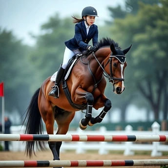 AI点评: 照片色彩运用清晰且协和,马匹的棕色与骑手的深色服装形成了良好的对比,突出了运动的动态感和专业感。照片中的光源方向与强度适中,能够很好地勾勒出马匹的肌肉线条和骑手的姿态。