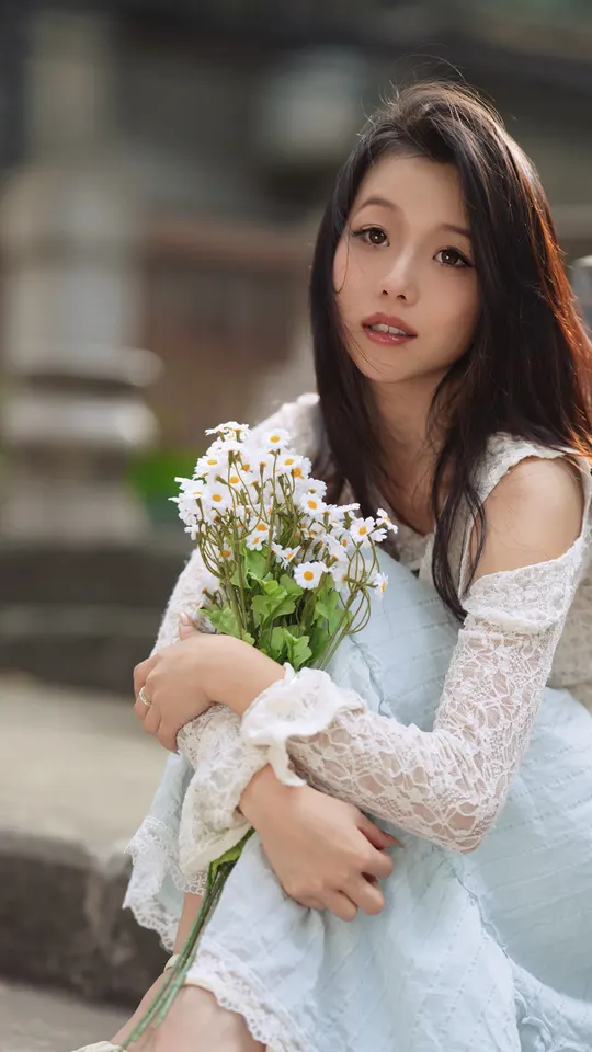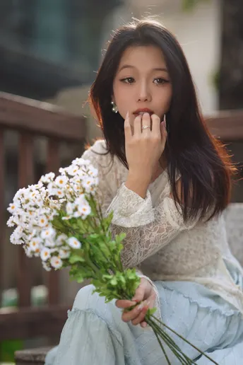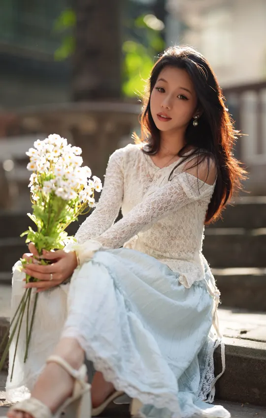 微风中的少女