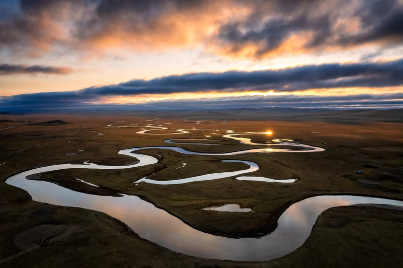 这张照片是在内蒙古呼伦贝尔大草原上,使用无人机拍摄的一幅清晨朝霞下的莫日格勒河景象。作为一名摄影师,我对自然风光的壮丽与细腻有着独特的追求,而莫日格勒河这片大地更是以其蜿蜒的河道和无边的草原风光而闻名,被誉为“天下第一曲水”。这次拍摄的初衷,便是想捕捉到这片神奇土地在晨曦中的静谧与动人之美。 在拍摄前,我经过详细的规划和准备,选择了一个能够俯瞰整条河道蜿蜒走势的视角,以便最大限度地展现出这条河流的曲折与大地的辽阔。当清晨的第一缕阳光逐渐从地平线升起,天空被霞光染成了柔和的橙红色,云层在光线的映衬下,呈现出层次丰富的色彩变化。在这个瞬间,莫日格勒河的水面反射着天空的色彩,犹如一条光芒四射的丝带,在大地上舒展开来。无人机的高空视角使得这一切显得格外壮观,河流的曲线在光影的映衬下格外清晰,蜿蜒的水流仿佛在无声地诉说着这片土地的悠久历史。 在拍摄过程中,我不仅被自然的雄伟所震撼,也感受到了一种宁静的力量。这片土地仿佛有自己的呼吸和脉动,河流的静谧与天空的变幻形成了鲜明的对比,朝霞映照下的景象让人有种超然脱俗的感觉。这一瞬间的捕捉,让我深刻体会到自然的纯粹与壮美,也让我更坚定了用镜头记录世间美景