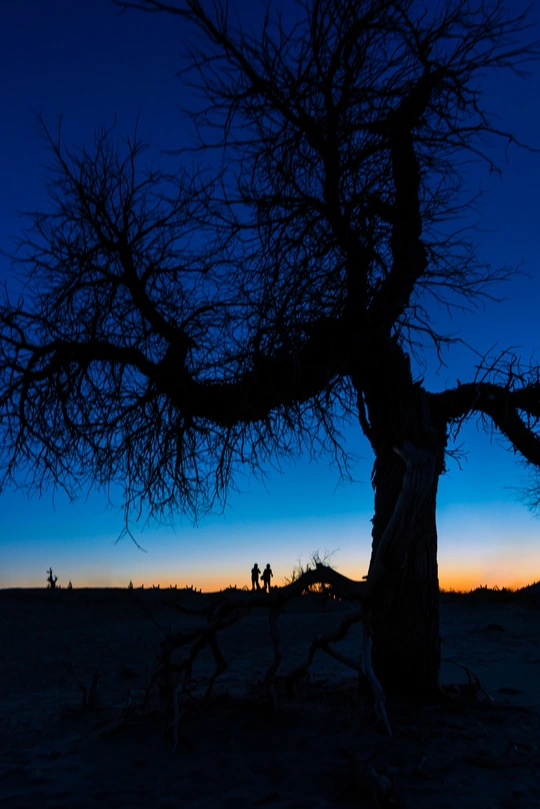 晨曦中,欣赏屹立不倒的胡杨枯树