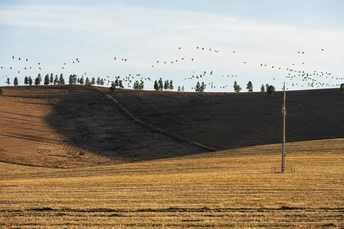 在内蒙古阿尔山,我拍摄了这幅展现大自然和谐之美的作品。阿尔山以其独特的自然景观和丰富的生态资源而著称,这里的广袤草原、起伏的丘陵和生机盎然的树林形成了绝美的画面。 这幅作品特别抓住了飞鸟掠过的瞬间,给静谧的草原增添了生机。黄昏时分的光线柔和,夕阳的余晖洒在大地上,温暖的色调与草地的金黄相得益彰。在这样的时刻,整个景观显得尤为宁静而富有诗意。画面中的电线杆,虽然是人类文明的象征,却在自然的怀抱中显得微不足道,仿佛在诉说着人与自然的共存关系。 通过这幅作品,我希望能够传达出自然的韵味和生命的力量。在这个瞬间,飞鸟的自由飞翔与宁静的田园风光形成鲜明对比,象征着生活的美好与和谐。作为一名摄影师,我的目标是用镜头记录下这些动人的瞬间,唤起观众对自然的思考和珍惜。希望每一位看到这幅作品的人,都能感受到大自然的魅力与生命的意义。