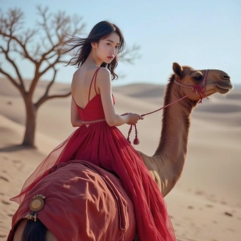 AI点评: 照片表现出色,整体色调和谐,红色裙子与沙漠背景形成鲜明对比,成功传达了强烈的情感和氛围,阳光充足,创造出清晰的阴影,突出了主体。