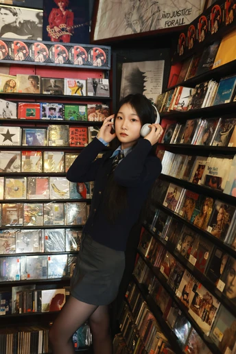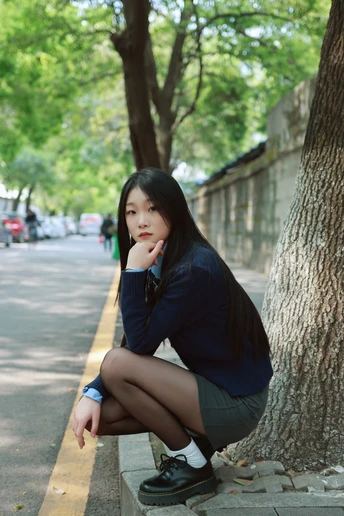 在黑白的世界里,你以一抹清纯的微笑,搭配神秘的黑丝,演绎出纯与魅的完美交响
