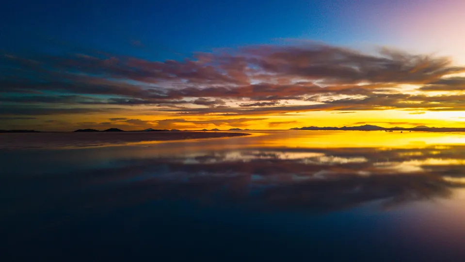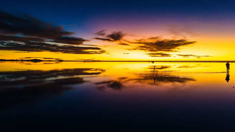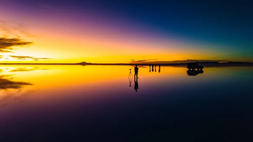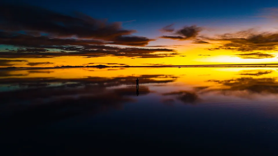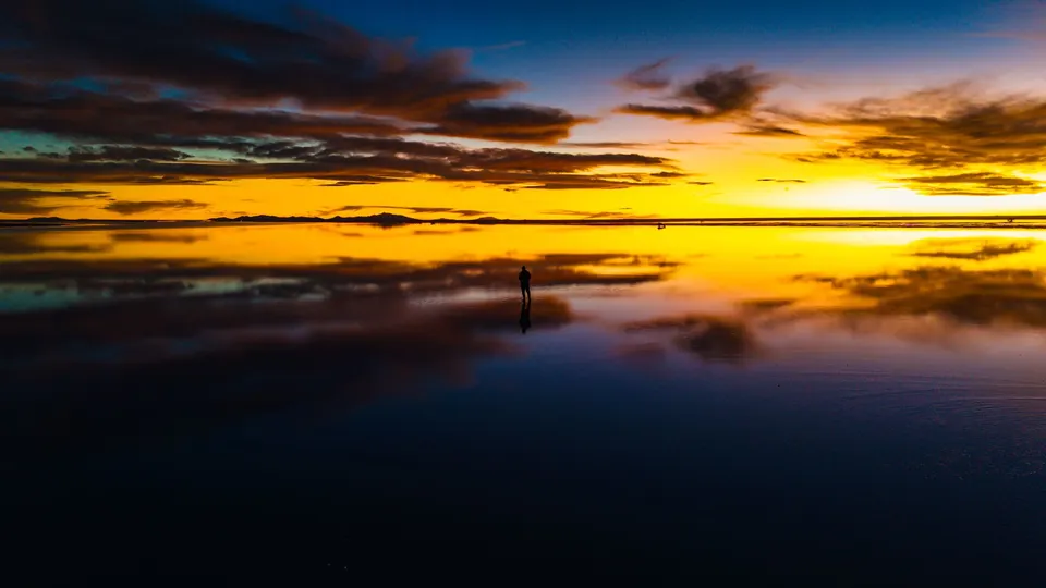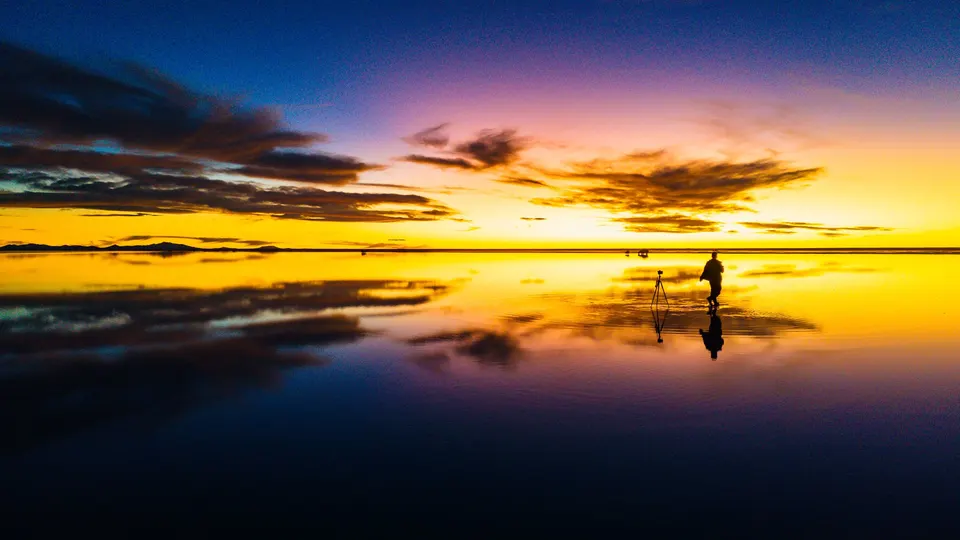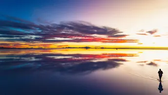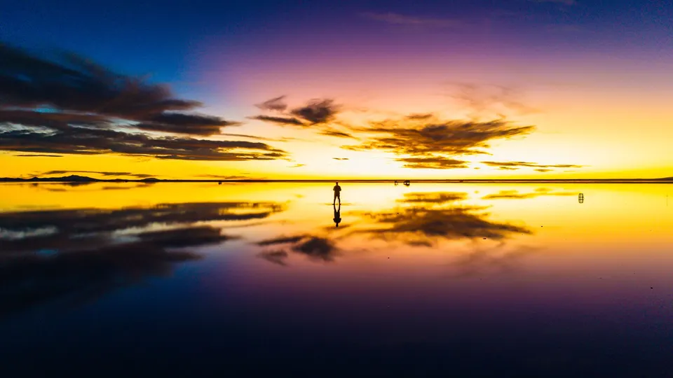 走了很多地方 看了无数次日落 但最梦幻的日落地 一定会是乌尤尼盐湖 在晴天有云无风的下午 镜像空间充满童话的色彩 暮色拥抱着夕阳余晖的温柔 彩色地面和落日余晖交相呼应 漫步其中仿佛误入了那童话世界 云朵在夕阳的余晖下变得流光溢彩 镜像下的五彩祥云铺满了天空和大地 定格的瞬间勾画出无限瑰丽的绝妙景象