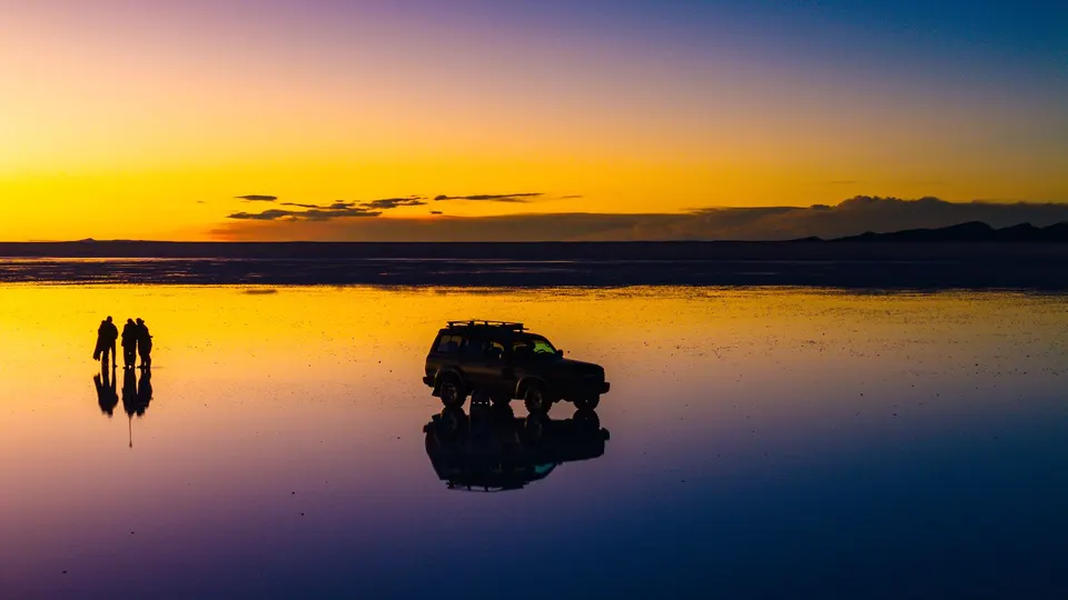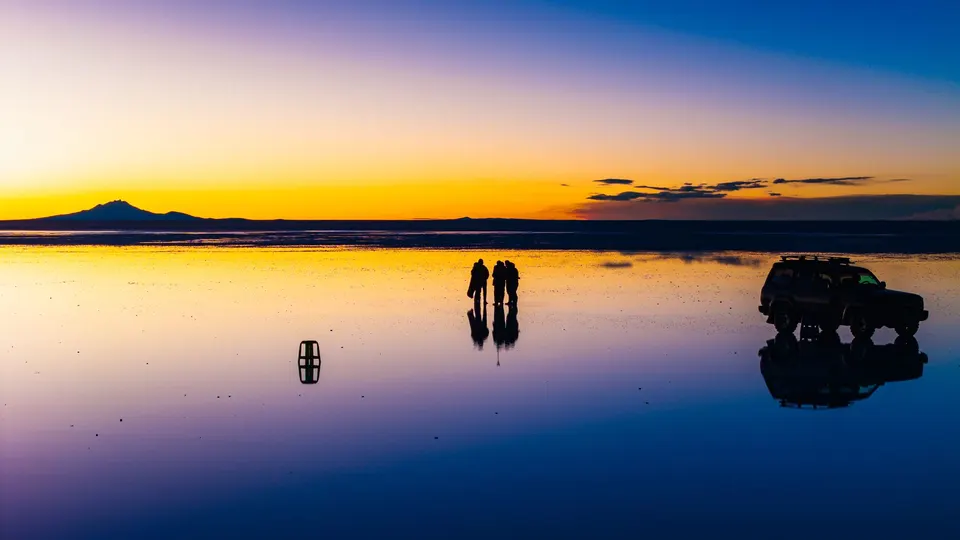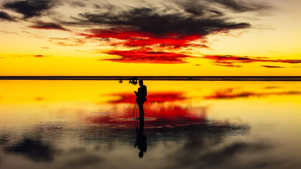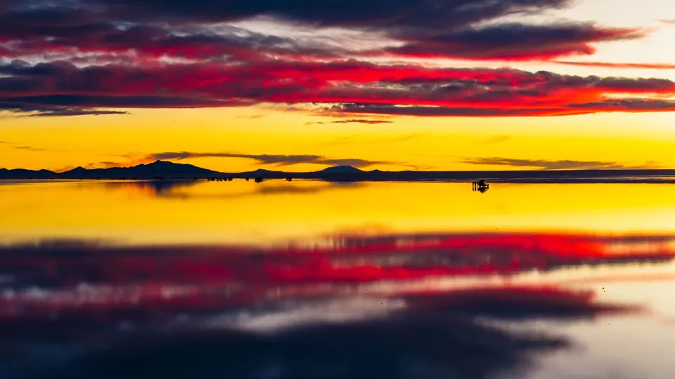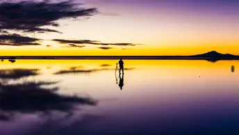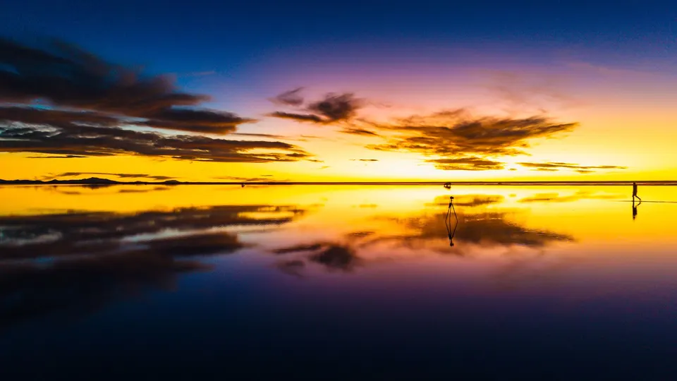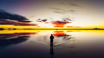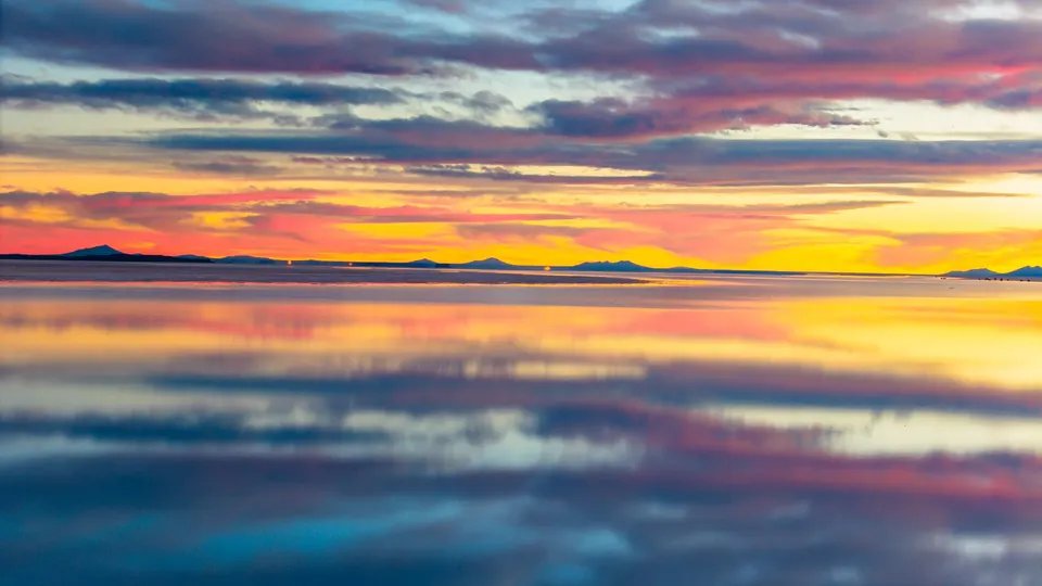 走了很多地方 看了无数次日落 但最梦幻的日落地 一定会是乌尤尼盐湖 在晴天有云无风的下午 镜像空间充满童话的色彩 暮色拥抱着夕阳余晖的温柔 彩色地面和落日余晖交相呼应 漫步其中仿佛误入了那童话世界 云朵在夕阳的余晖下变得流光溢彩 镜像下的五彩祥云铺满了天空和大地 定格的瞬间勾画出无限瑰丽的绝妙景象