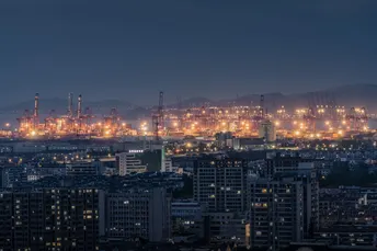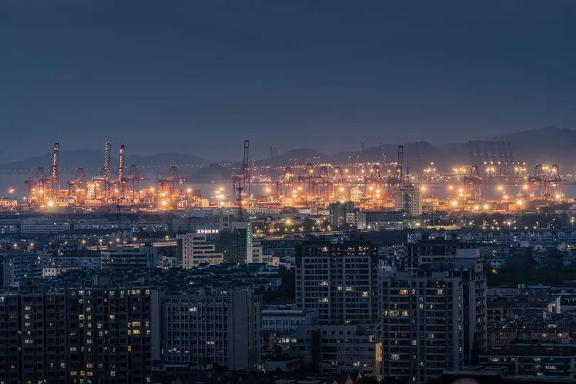 夜晚的港口,群星璀璨 城市已经入眠,港口还在生生不息的运转