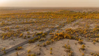 在那遥远的西北边陲,有一片神秘而迷人的土地,那里生长着古老而顽强的胡杨林。每年的秋天,当第一缕秋风拂过,这片胡杨林便仿佛被大自然施了魔法,悄然换上了一身金装。 我一直对胡杨林心驰神往,听闻它们“生而千年不死,死而千年不倒,倒而千年不朽”的传奇,心中充满了敬畏与好奇。终于,在一个金秋时节,我踏上了这片向往已久的土地,只为亲眼目睹那震撼人心的胡杨美景。 当我踏入胡杨林的那一刻,我被眼前的景象惊呆了。阳光透过金黄的树叶洒下,斑驳的光影交织在地上,仿佛一幅梦幻的画卷。胡杨树高大挺拔,它们的枝干扭曲而沧桑,仿佛在诉说着岁月的故事。每一片树叶都像是大自然精心雕琢的艺术品,在秋风中摇曳生姿,发出沙沙的声响,仿佛在演奏着一首秋的乐章。 我漫步在胡杨林间,感受着秋天的气息和胡杨的独特韵味。这里的一切都让我陶醉,让我忘却了尘世的喧嚣与纷扰。我看到一棵胡杨树,它的树干虽然已经有些干枯,但依然顽强地挺立着,枝头的树叶在阳光的照耀下闪烁着金色的光芒,仿佛在向人们展示着它不屈的生命力。那一刻,我心中涌起一股莫名的感动,我仿佛看到了胡杨在漫长的岁月中,历经风雨洗礼,却依然坚守在