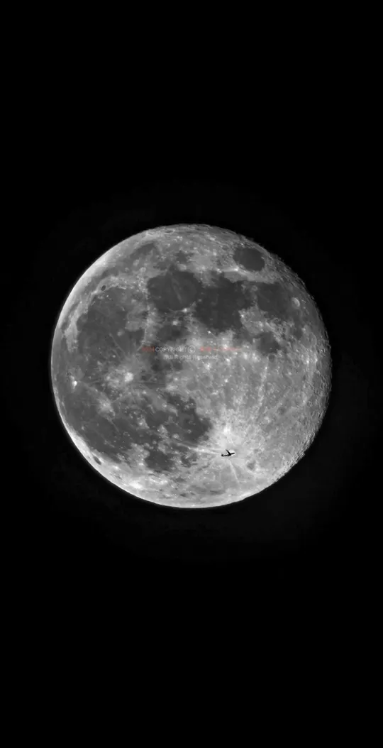 在今年最大的圆月我拍到了飞机凌月~