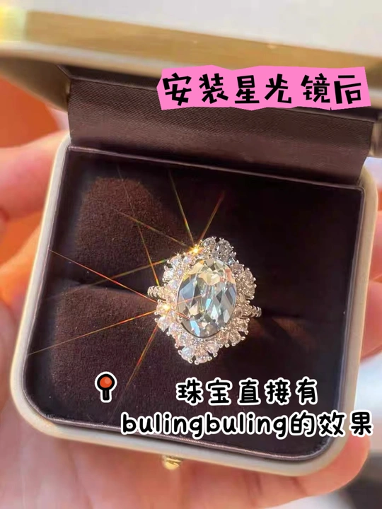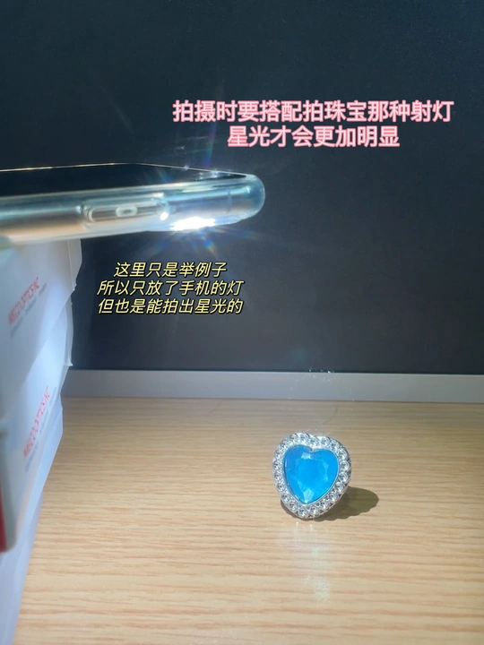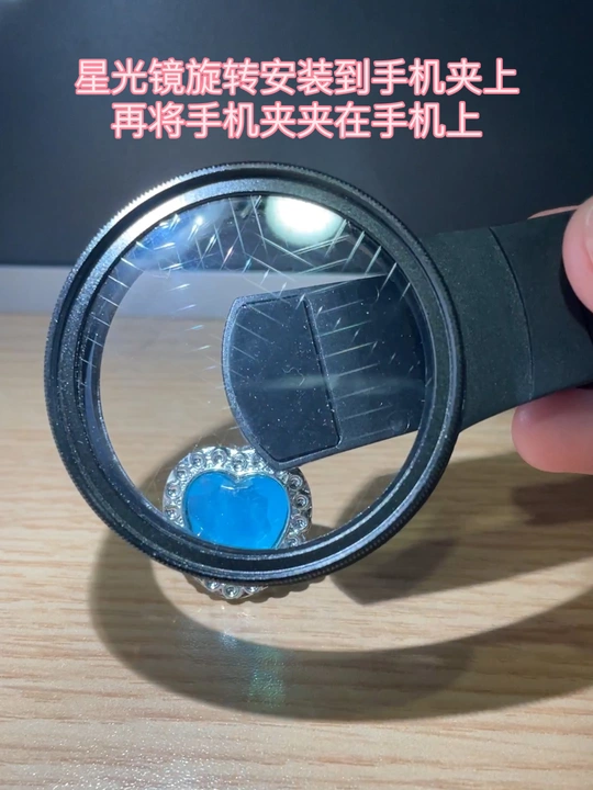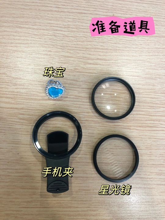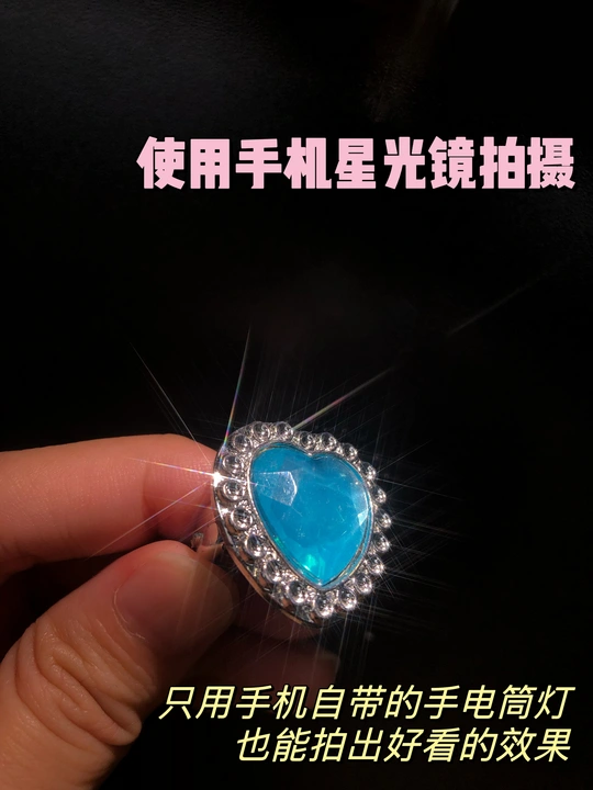 安装手机星光镜,能拍出星芒效果,简单携带。推荐搭配珠宝拍照射灯,效果更佳。