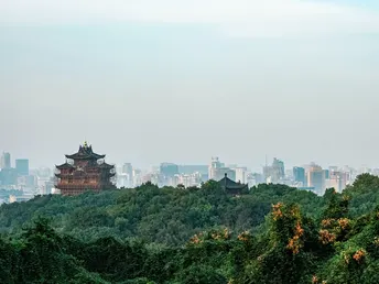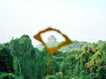 在杭州有那么一处隐藏在吴山深处的秘境,四周被茂密的藤蔓和葱郁的树木环绕,空气清新,仿佛天然的氧吧。清晨或雨后,薄雾缭绕在树梢和山谷之间,给这里增添了一丝梦幻的感觉。小路蜿蜒通向深处,时而能听见鸟鸣,显得分外宁静。整个景区恍若隔世,令人仿佛走入一片远离尘嚣的世外桃源,令人心旷神怡。