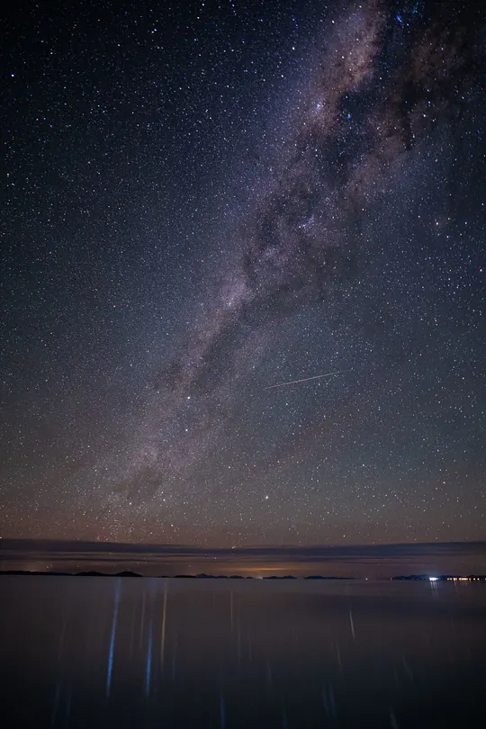 科罗拉达湖的银河 夜幕降临, 高原在寂静中沉睡, 科罗拉达湖如一面黑色的镜子, 等待星光的洒落。 银河铺展在天际, 一条银色的河流, 穿过宇宙的深处, 流向无尽的远方。 星星低垂, 映在湖面上, 和火烈鸟的影子一起, 漂浮在冷冽的夜风里。 仿佛可以触摸, 又遥不可及—— 我凝望着那片璀璨的光芒, 在天地间找到微小的自己。