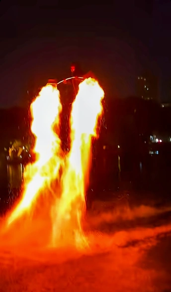 铁花悬空夜映照,炫目夺彩熠生辉。