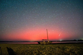北纬42度的极光,流星划过,熠熠生辉