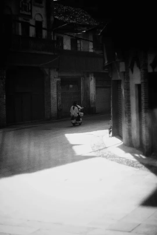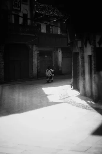 小镇里骑电瓶车的小女孩