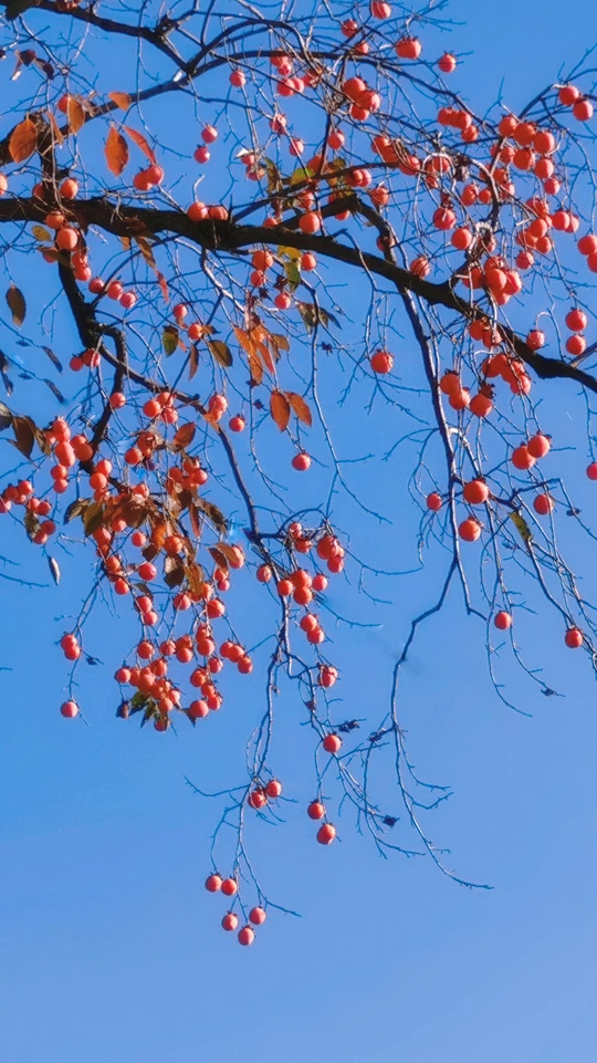 南太行满山遍野散落的许多野生土长的柿子树,给深秋的山谷添了一份诗意