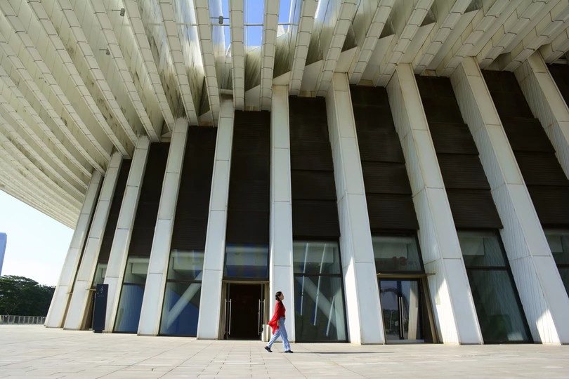 广西文化艺术中心光影下的曲线建筑结构美学