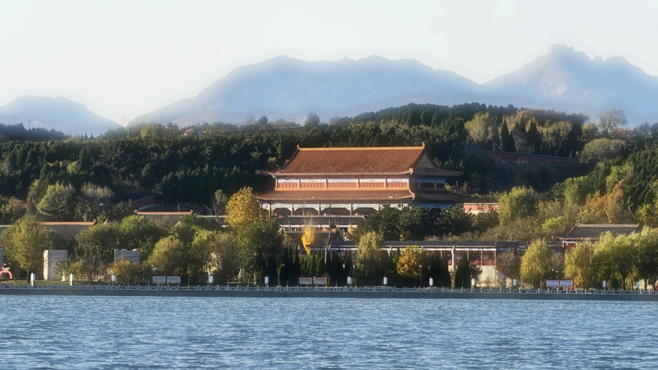 夕阳映照下的栖霞邱祖故里更显道家气场