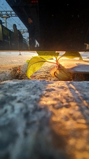 在钢筋混泥土结构下 冰冷的钢化玻璃一角 植物与人 都在追逐梦想