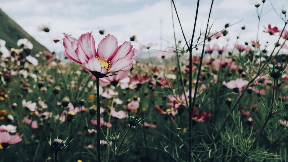蓓蕾初成,芙蕖临波。秋英染金,梅映雪香。
