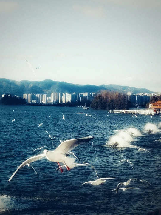 _又一次来到滇池海埂,海鸥也来到了这里。我说能给你们拍一张照嘛?它们说:请便~