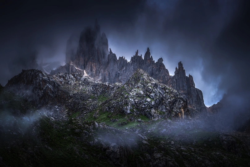 《317川藏线途中的“魔界”》 云雾缭绕,天地之间弥漫着神秘的色彩,将峻山轻柔地笼罩在朦胧之中,让人感受到“魔界”般的神秘与变幻莫测。
