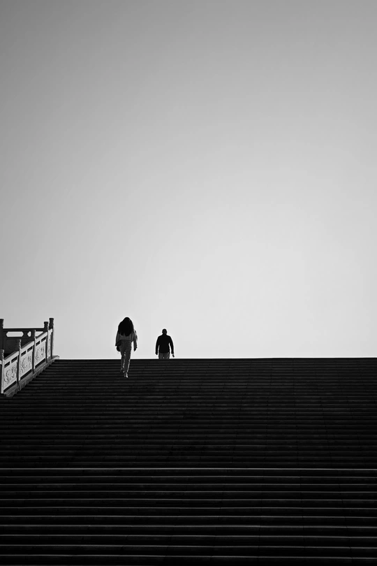 长长的台阶上,两人拾级而上,只留下渐行渐远的背影。