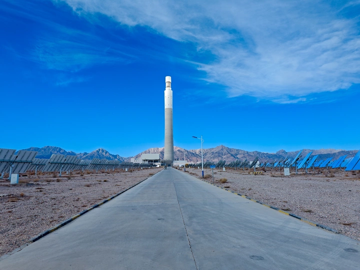 工作原因来到青海,近距离参观塔热光热电站,犹如矗立在高原上的耀眼明珠,仿若进入奇妙迷离的科幻世界。