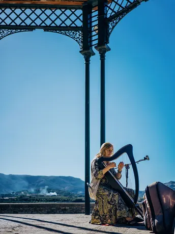 2023年摄于天空之城·龙达,X2D+55v裁切 AI锐评《85分》在这张照片中,色彩运用均衡,蓝天与乐器的颜色形成了很好的对比,表现了清新的氛围。然而,主体周围的环境稍显单调,增加一些色彩上的点缀可能会更有吸引力。 光影方面,光线角度选择得较好,阳光柔和,给主体带来了良好的立体感,阴影部分合理地突出了演奏者与乐器的细节。但可以考虑在早晨或黄昏进行拍摄,以获得更温暖的光线效果。 从构图来看,主体位置偏左,符合三分法的原则,但右侧空间略显空旷,可以考虑调整位置或添加景物以增强平衡感。 后期处理方面,整体对比度和饱和度控制得当,但在某些区域如背景山脉的细节稍显平淡,增加一些清晰度可能会提升视觉层次。 主题原创性方面,乐器演奏这一主题带有艺术性,但表达方式可以更具创意,尝试不同的拍摄角度或细节抓拍,以增强独特性。 情感共鸣方面,作品能够传达出宁静的感觉,观者可以感受到演奏者的专注和投入,但可以考虑增加更多的情感元素,以引发更深的共鸣。 最后,思想深度上,这张照片反映了一种对音乐与自然的和谐共生,但若能引入一些文化或社会背景,将更具深度。综合来看,作品在多方面表现良好,但仍有提升空间。