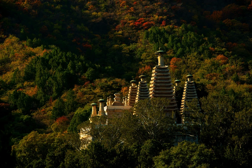 2020年10月28日北京香山碧云寺,神秘古寺静卧在秋日的西山脚下。