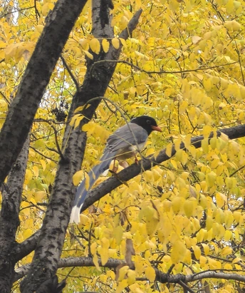 散步遇到一只红嘴蓝鹊,多可爱的鸟儿呀!
