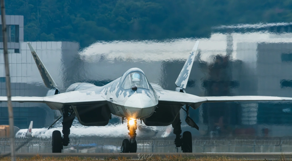 拍摄于11月10日珠海航展前的排练日。飞行员是俄罗斯传奇试飞员谢尔盖-博格丹,su57的正面十分的优雅,怪不得有外号“苏飞超薄”。唯一可惜的就是那天是水泥天,因此空中表演的照片差强人意