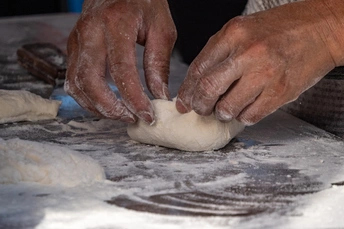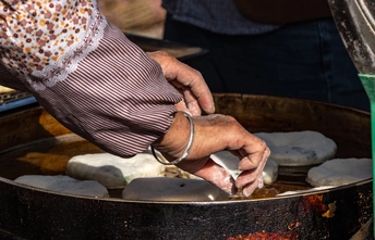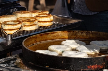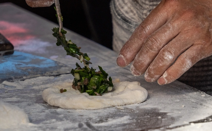 2024年11月9日,贵州省黔西南布依族苗族自治州兴义市乌沙镇集市上,简单而始终深受老百姓喜爱的菜饼,在手艺人的手上翻舞。 菜饼是平民的美味,制作起来也非常简单。面和好,醒着,再将切成韭菜馅儿,放入油、盐等调料,将馅儿调好。面醒好了就开始揉面,弄成一个个很薄、很小的面团,之后,在饼上均匀的放入馅料,揉团包裹再按压封死。接下来就是烙饼的过程,集市上老老少少都喜欢的美味就此出炉。 菜饼是一种山野情趣的美味!走在集市上,嚼着菜饼的清香逛街,是一种惬意的乡愁记忆。