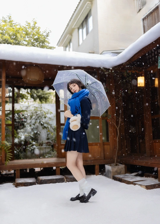 魔豆:壹壹 前期、后期:电脑侠客 器材:佳能EOS R5、RF 35 F1.4 VCM 作者随想:以前一直非常羡慕身处北方的摄友,可以在冬天拍雪景人像。像广州这样的南方城市,拍雪景人像的机会非常少,所以这次遇上了就第一时间报名参加。跟平时拍的户外人像不同,雪景人像最大的看点是那种漫雪纷飞、银装素裹的环境氛围,画面干净唯美的同时又带有一丝苍凉。为了充分体现这一点,这次选用了以环境人像见长的35广角镜头,在交代拍摄环境的同时,也为后期添加特效留出了足够的画面空间。魔豆的JK服饰和日系雪景布置相得益彰,唯一的遗憾就是现场没有阳光,没法拍出那种梦幻迷人的逆光人像,只能等下一次有机会再补上了。后期修图思路是采用胶片色调风格,加强冷暖对比,添加飘雪特效,进一步增强画面氛围感。在此感谢壹壹的精彩演绎和念姐的精心组织!