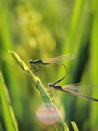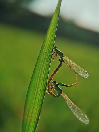 豆娘体态优美,各种不同的颜色,看着很柔弱,却是肉食动物,以扑捉小昆虫为食。