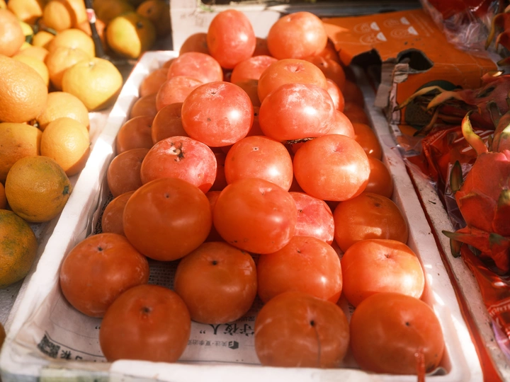 水果摊上的柿子