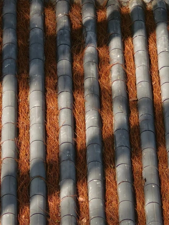🍉作品采集 在山涧一古建筑上登顶,看到对面屋顶,阳光照射在瓦垄上光影,做为收录。 🍎作品陈述 每一条瓦垄,都是线条,整体形成立体感十足又呈规律状的图案,阳光经过树影投射,在瓦上又形成明暗对比和英文字母,加上瓦垄里的松针的颜色衬托,甚是美妙。 🍅总结 所到之处,留意光影和规律及异变的场景, 聚焦在局部,稳住手机,按下键。