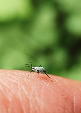 蚜虫,是半翅目蚜总科的统称,包括蚜总科下的所有成员,目前已经发现的蚜虫总共有10个科约4400种,其中多数属于蚜科。常分为头、胸、腹三部分。体表光滑或分泌蜡粉、蜡丝覆盖虫体;体毛顶端尖锐或平钝,有时膨大为头状或扇状;腹管无、环状或管状;尾片多为半圆形、瘤状、长短不等的圆锥形、三角形和五角形等。蚜虫又名“蜜虫子”,因能产生蜜露而得名。 蚜虫主要分布在北半球温带地区和亚热带地区,热带地区分布很少。喜欢群居,对黄色、橙色有强烈的趋性,绿色次之,对银灰色有负趋性。蚜虫常聚集在幼苗、嫩叶、嫩茎和近地面的叶片上,取食寄主汁液。蚜虫一年能繁殖20-30代,出生以后只需5天就能生育后代;寿命约3个月。 蚜虫产生危害时会排出大量的蜜露污染叶片和果实,从而引起煤污病的发生,影响植物光合作用,蚜虫还能传播病毒病,造成病毒病的大面积发生。蚜虫主要有农业、物理、药剂三种防治方法,例如可及时摘除带蚜虫叶片,清除田边杂草和周边受蚜虫为害的老残作物,轮作韭菜等作物趋避或种植玉米屏障,阻止蚜虫迁入等。