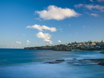 2023年冬天使用哈苏X2D+55v拍摄于悉尼Bondi beach📷 AI锐评《85分》这张照片展现了出色的色彩和光影效果,蓝天与海洋的搭配和谐统一,营造出宁静而生动的氛围。色彩上,蓝色与白云的对比让整个画面清新,但若能增加一些暖色调,会更具层次感。光影方面,光线的方向很好地突显了海面的波动,长时间曝光效果使得水面显得柔和流畅,可以考虑在前景加入更多的动态元素,以增强视觉吸引力。构图上,画面遵循了三分法则,主体突出,但右侧建筑物的密集感稍显压迫,应尝试移除某些分散注意力的元素。后期处理中,对比度和饱和度的应用适当,未过度修饰,整体表现力较强。主题上,尽管表现出典型的海岸风光,但缺乏独特视角,建议探索一些不同的拍摄角度,以捕捉新颖的视角和情感共鸣。情感传达上,照片的静谧感引起了观者的放松,但可以通过加入人或物体的陪衬来引发更深的情感共鸣。总体来看,这张照片在多个方面表现优异,但在主题原创性和情感共鸣上仍有提升空间,综合评定85分,具有一定的优秀潜力。