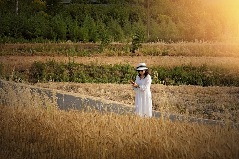 麦收时节,麦田一片金色,八百里秦川呈现出一片喜祥和