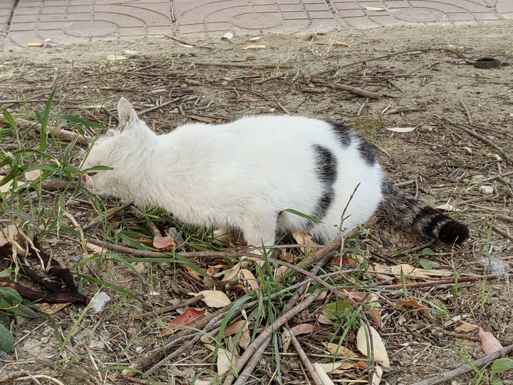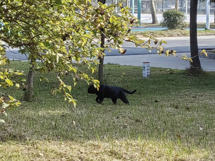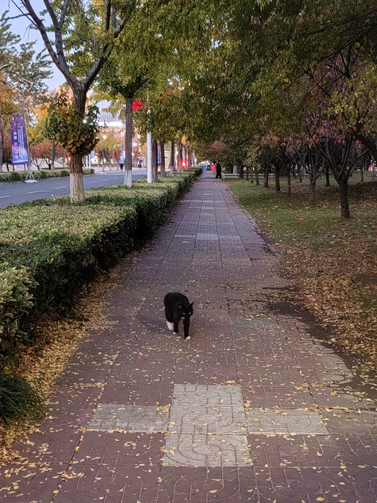 大学里的猫猫悠闲走在校园里,总忍不住走近拍一张