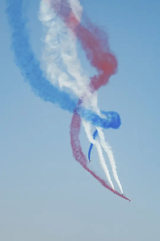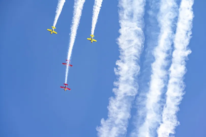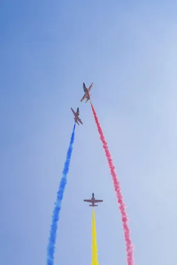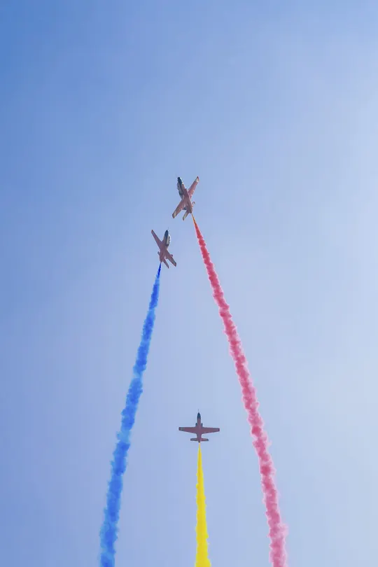 航展上飞机表演空中拉烟