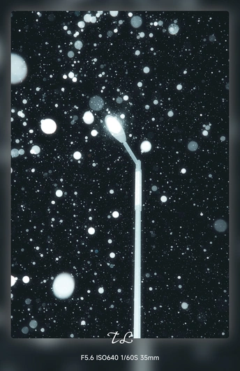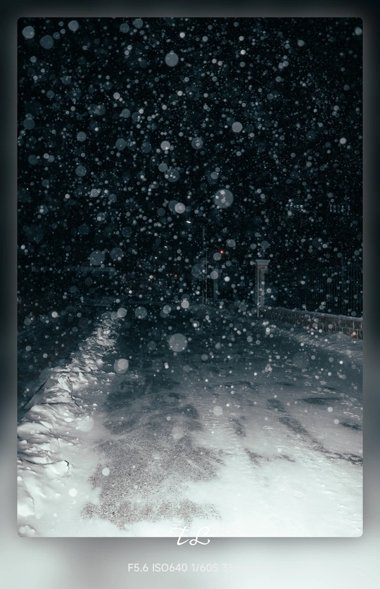 暴雪如期而至,在夜色下利用闪光灯定格飘扬的雪花,仿佛进入如梦如幻的世界