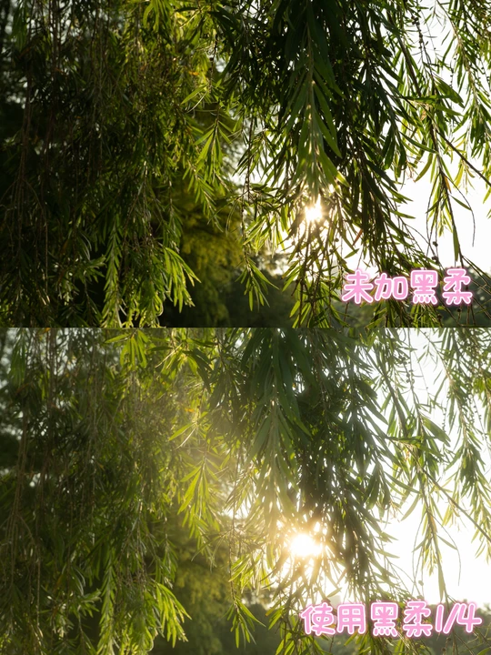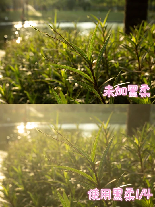 黑柔镜可以柔化高光阴影部分,创造出一种朦胧的氛围感,使高光和阴影交界处呈现自然的梦幻效果。 效果如图,黑柔滤镜搭配下午5点的夕阳电影感直接拉满了~ 常见的型号方面一共有1/2,1/4,1/8,数值越大柔化效果越强。 所以你会更喜欢哪个画面效果呢?欢迎评论区晒出你用黑柔镜拍出的大片~ 拍摄设备 松下S5M2 松下24-105mm MECO美高 黑柔滤镜1/4