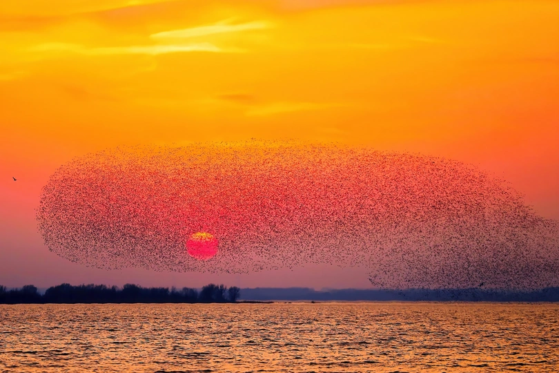 鸟儿集群齐飞的景象不仅展现了灵动的身姿,更炫耀了速度与协同。鸟类专家解释,原来它们是为了降低被捕食的风险或提高觅食效率,才聚在一起飞行、栖息,造就了独特的“鸟浪”景象。