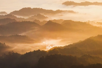 “江南好,风景曾旧谙”诗句里的画面 这是真正的水墨江南 一个晨曦我在山上拍日出 无人机飞起看到了云海 看到山和云海间还有一个徽派小村庄 同时它们正被晨光唤醒着 于是我用mavic3无人机的7倍镜头拍下了这一个画面 .