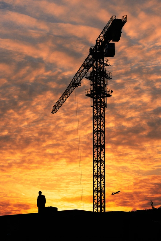 下班路上看到这日落,等双流机场飞机起飞的时候,拍下了这幅塔吊、工人、飞机同框的剪影。