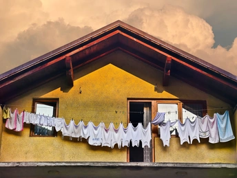 画面没有人,但是家的温情却能溢出屏幕。通过光影摄影记录生活,秩序的衣物,体现出一大家子的其乐融融。