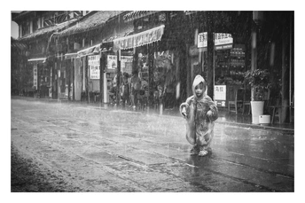 漫步古镇老街,突入其来大雨让我们躲避不及。与之相反,小朋友对于大雨的爱无需言表!面对我的镜头,她突然定住了,而我也拥有了我最喜欢的照片之一!