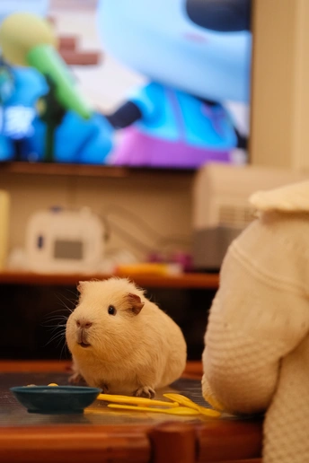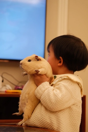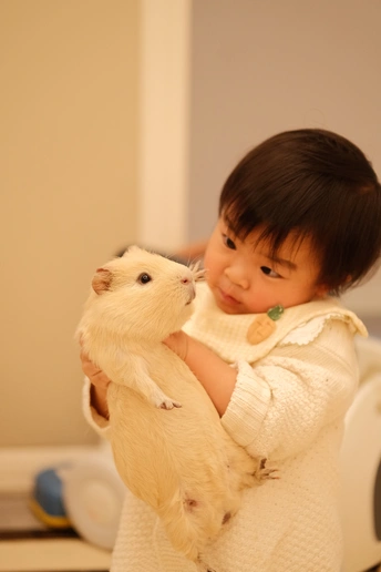 一岁的奶茶是家里的一份子和宝贝是好朋友。豚鼠是真的非常温顺随和不会抓人咬人,也不会去攻击孩子。但是“造粪机”是真的名不虚传。