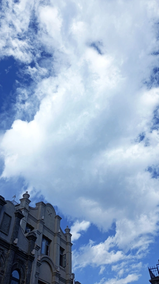 在晴朗的日子里,偶然抬头,看见了蔚蓝的天空,形状多变妙不可言的白云,心旷神怡。